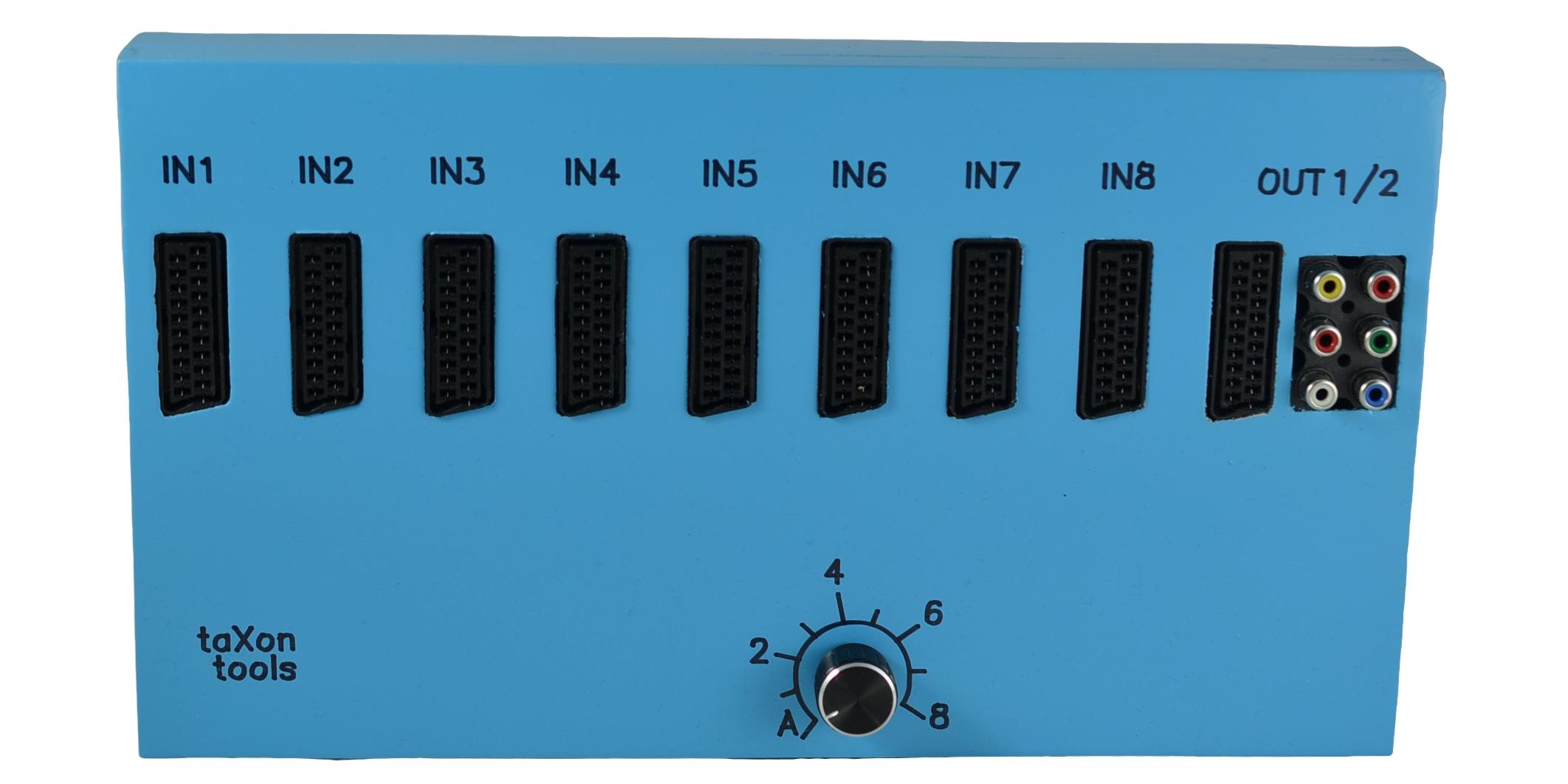 Der Taxon Scart Switch ermöglicht es, falsch beschaltete Scart-Kabel zu korrigieren. Manchmal sind nicht alle Masse-Anschlüsse im Kabel richtig verbunden. Der Taxon Scart Switch bietet ein gemeinsames Masse-Potential für alle Signale und leitet diese somit korrigiert an das Ausgabegerät weiter. Dies kann zu einer besseren Bild- und Tonqualität bei diesen Kabeln führen.